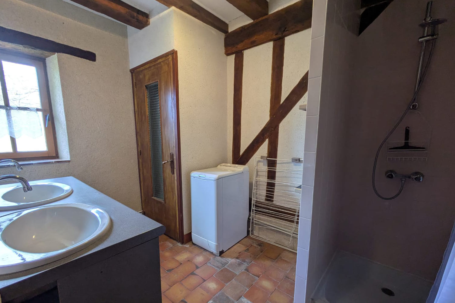 Dans un placard se trouve également le nécessaire pour l’entretien du gîte. Un tapis de bain est fourni et les toilettes sont séparées de la salle d’eau pour plus de confort.